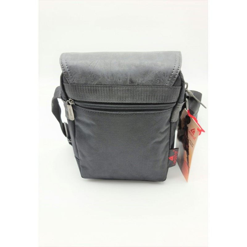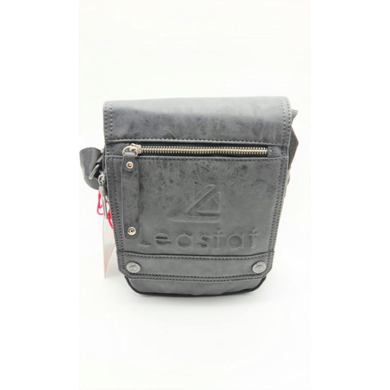 Men's crossbody bag LEASTAT 9687, medium-sized, with an adjustable strap. Dimensions: 18 cm length x 23 cm height x 9 cm depth. Made from waterproof fabric and eco-friendly leather. It features 5 zippered compartments for convenient use. Color: black.